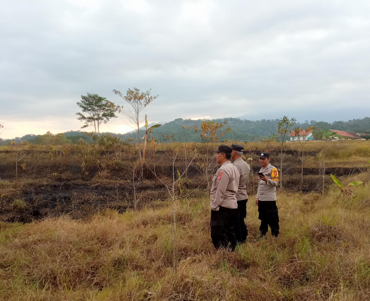 Kuat Personil Polsek Cisayong Aipda Kusmana, Aipda Iksan dan Aipda Wandi S, bersama Babinsa Desa Cileuleus Koramil 1207 Cisayong Peltu Joko Prasetyo melakukan pengecekan ke lokasi kebakaran lahan.