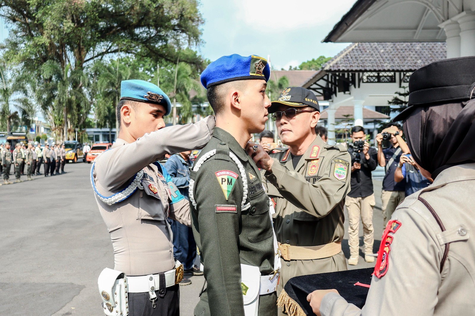 Bupati Ciamis Herdiat Sunarya memimpin Apel Gelar Pasukan Ops Mantap Brata 2023 - 2024, di halaman Pendopo Kabupaten Ciamis, Selasa (17/10/2023). Dok. Prokopim Kab. Ciamis