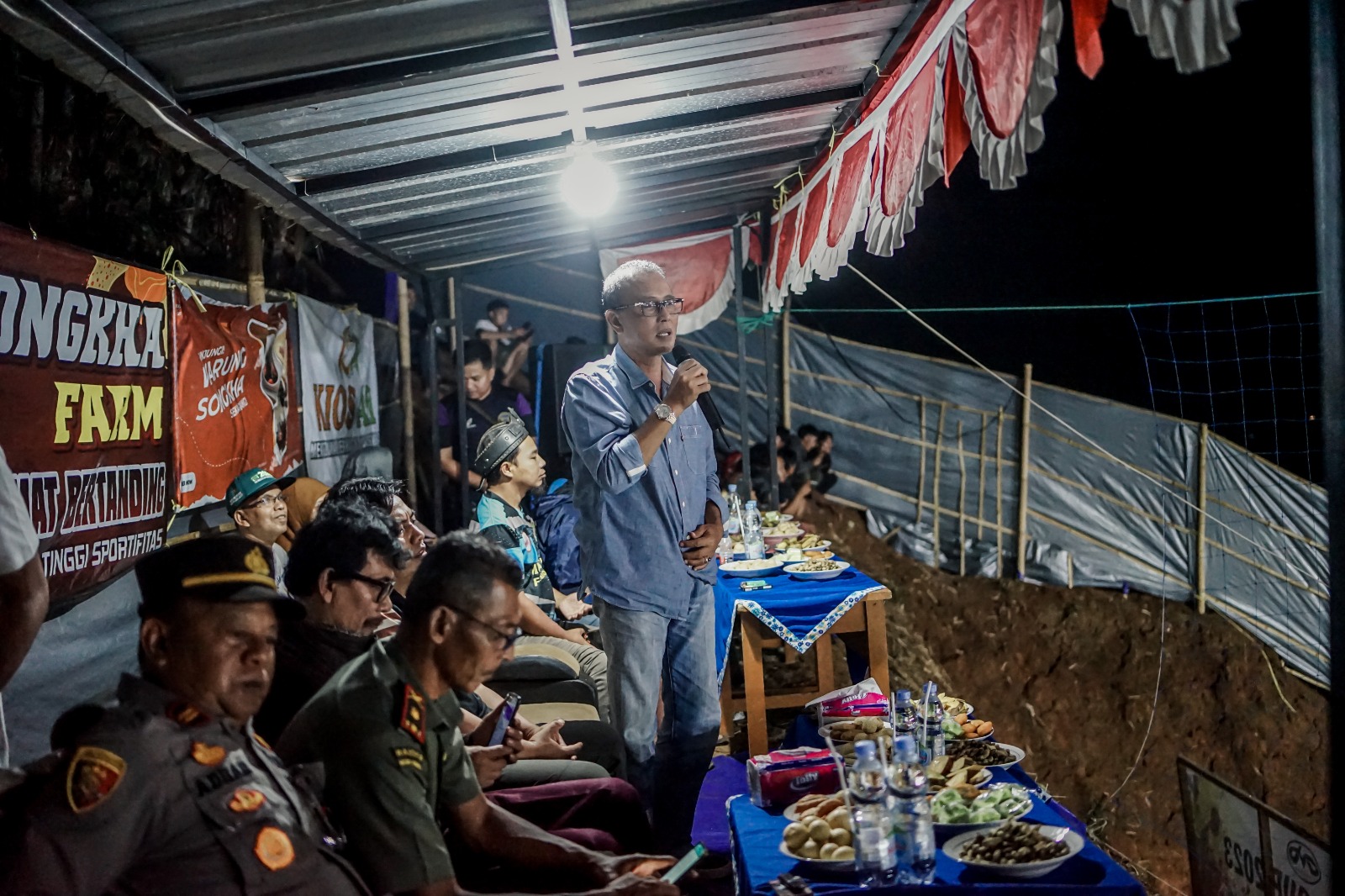 Bupati Ciamis, Herdiat Sunarya menyampaikan sambutannya saat menghadiri penutupan turnamen bola voli Amubas Cup. Dok. Prokopim Kab. Ciamis