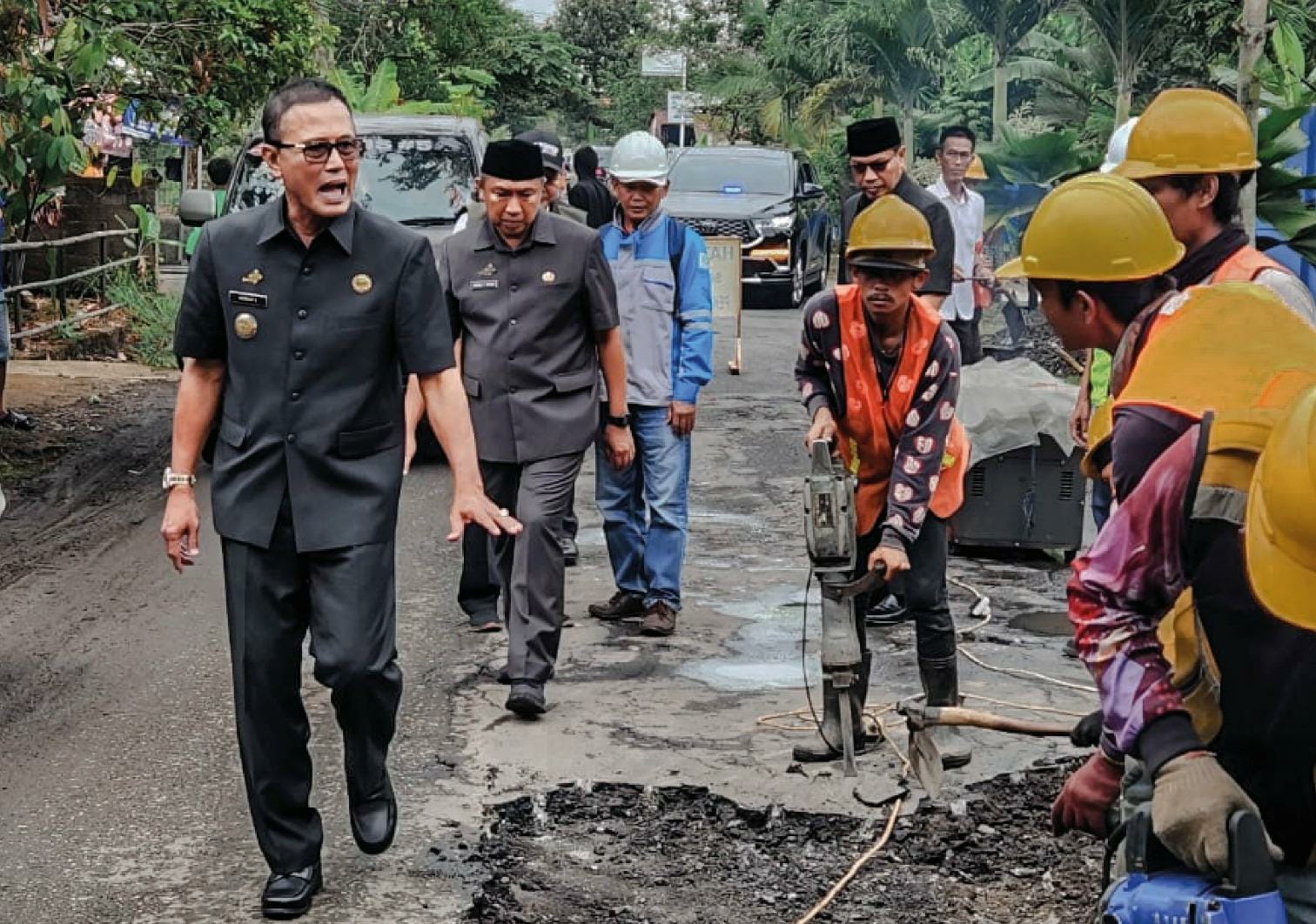 Tinjau Proyek Pengaspalan Jalan Banjarsari-Nambo, Bupati Ciamis Minta Pekerjaan Berkualitas dan Tepat Waktu