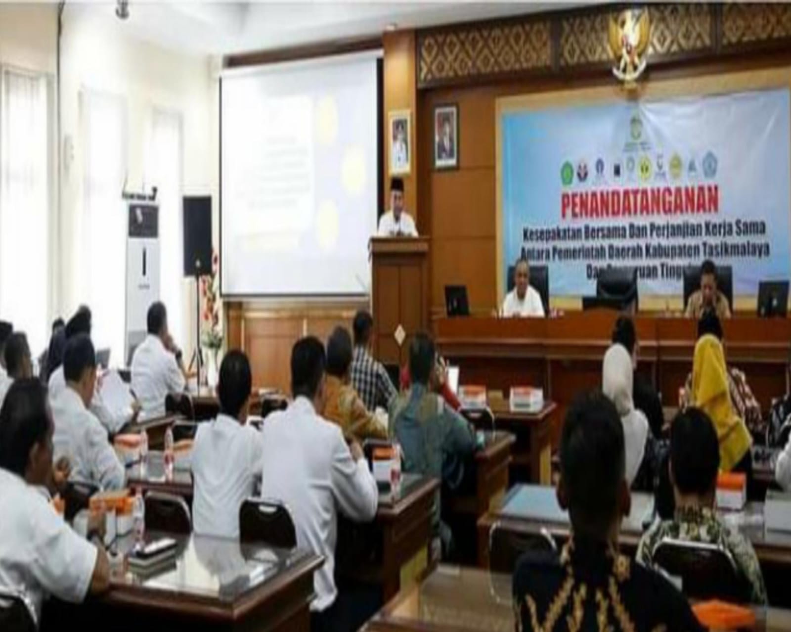 INOVATIF89.COM – Mewakili Bupati Tasikmakaya H. Ade Sugianto, S.IP, Sekretaris Daerah (Sekda) H. Mohamad Zen menghadiri penandatanganan kesepakatan bersama dan perjanjian kerja sama antara Pemerintah Daerah (Pemkab) Kabupaten Tasikmalaya dengan Perguruan Tinggi, di Aula Wiradadaha Bappelitbangda Kabupaten Tasikmalaya, Rabu (15/11/2023).