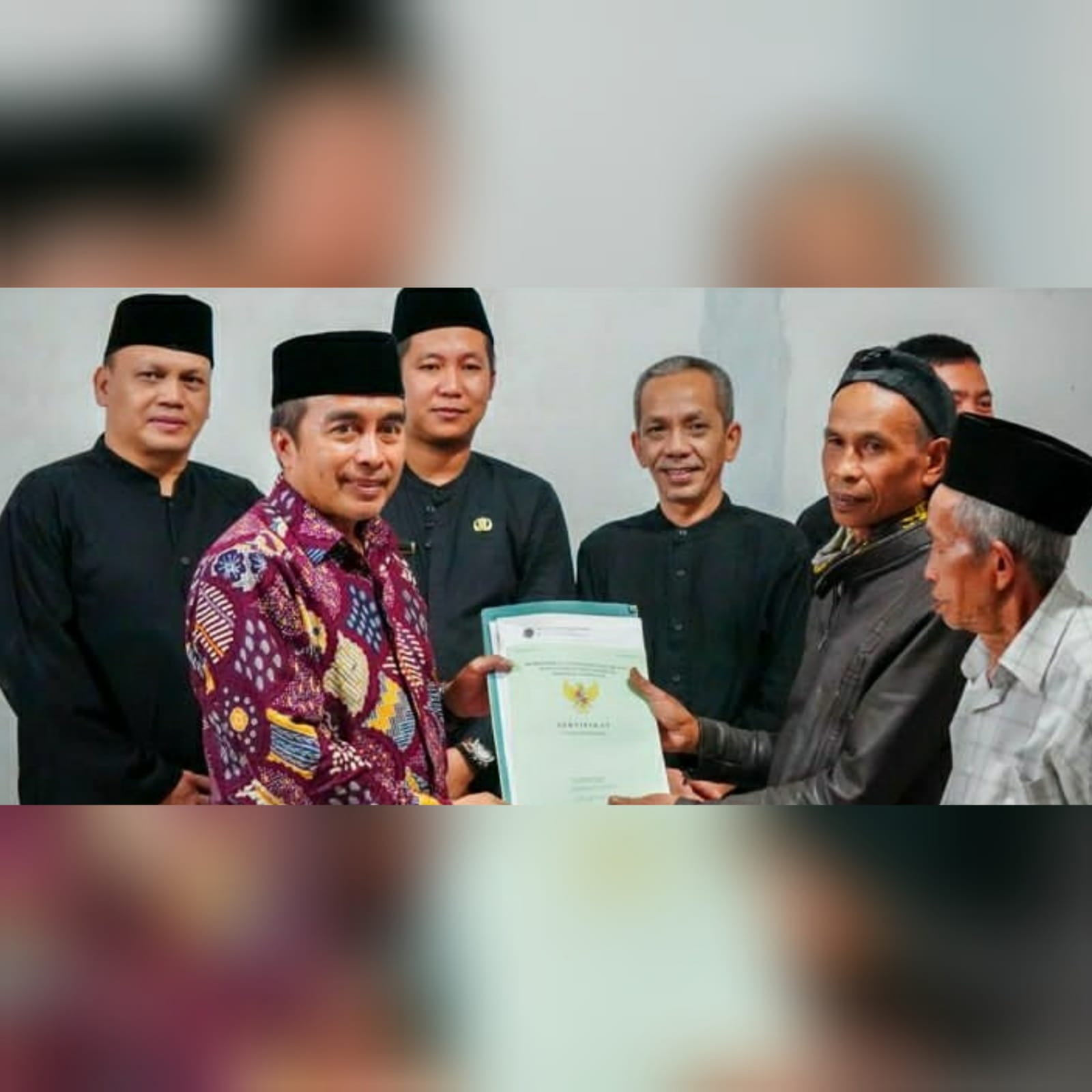 Sertifikat tersebut diserahkan secara simbolis oleh Sekretaris Daerah (Sekda) Dr. H. Mohamad Zen, M.Pd, mewakili Bupati Tasikmalaya H. Ade Sugianto, S.IP, di Aula Kantor Desa Cipicung, Kecamatan Culamega, Selasa (02/04/2024).