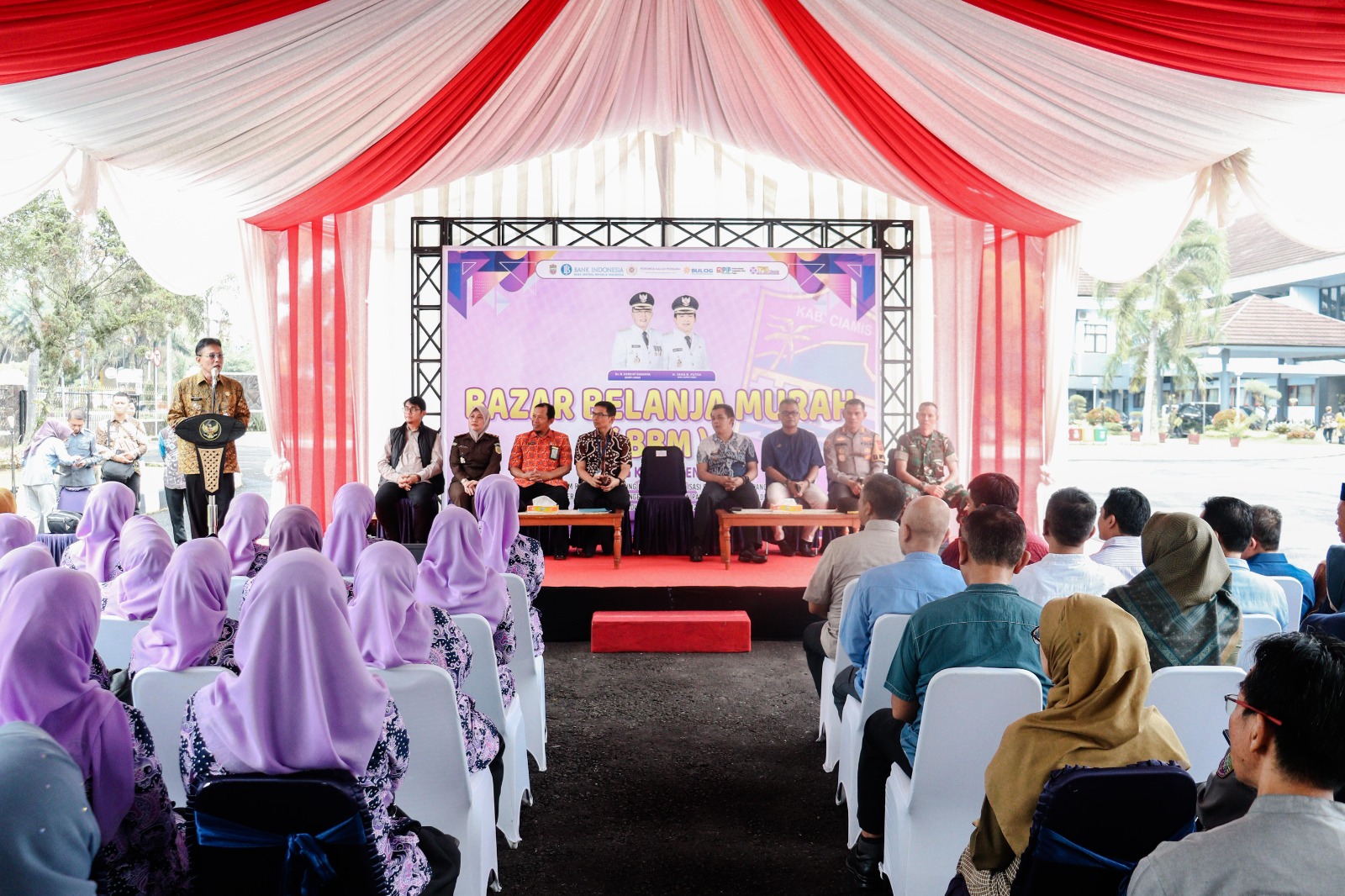 INOVATIF89.COM – Dalam rangka menyambut Lebaran Idul Fitri 1445 Hijriah, Pemerintah Kabupaten melalui Tim Pengendalian Inflasi Daerah (TPID) Kabupaten Ciamis yang bekerjasama dengan Perwakilan BI Tasikmalaya, Perumda Galuh Perdana, Subdrive 3 Bulog Ciamis dan Stakeholder lainnya kembali gelar Bazar Belanja Murah (BBM), di halaman Pendopo Kabupaten Ciamis, Jum’at (05/04/2024).