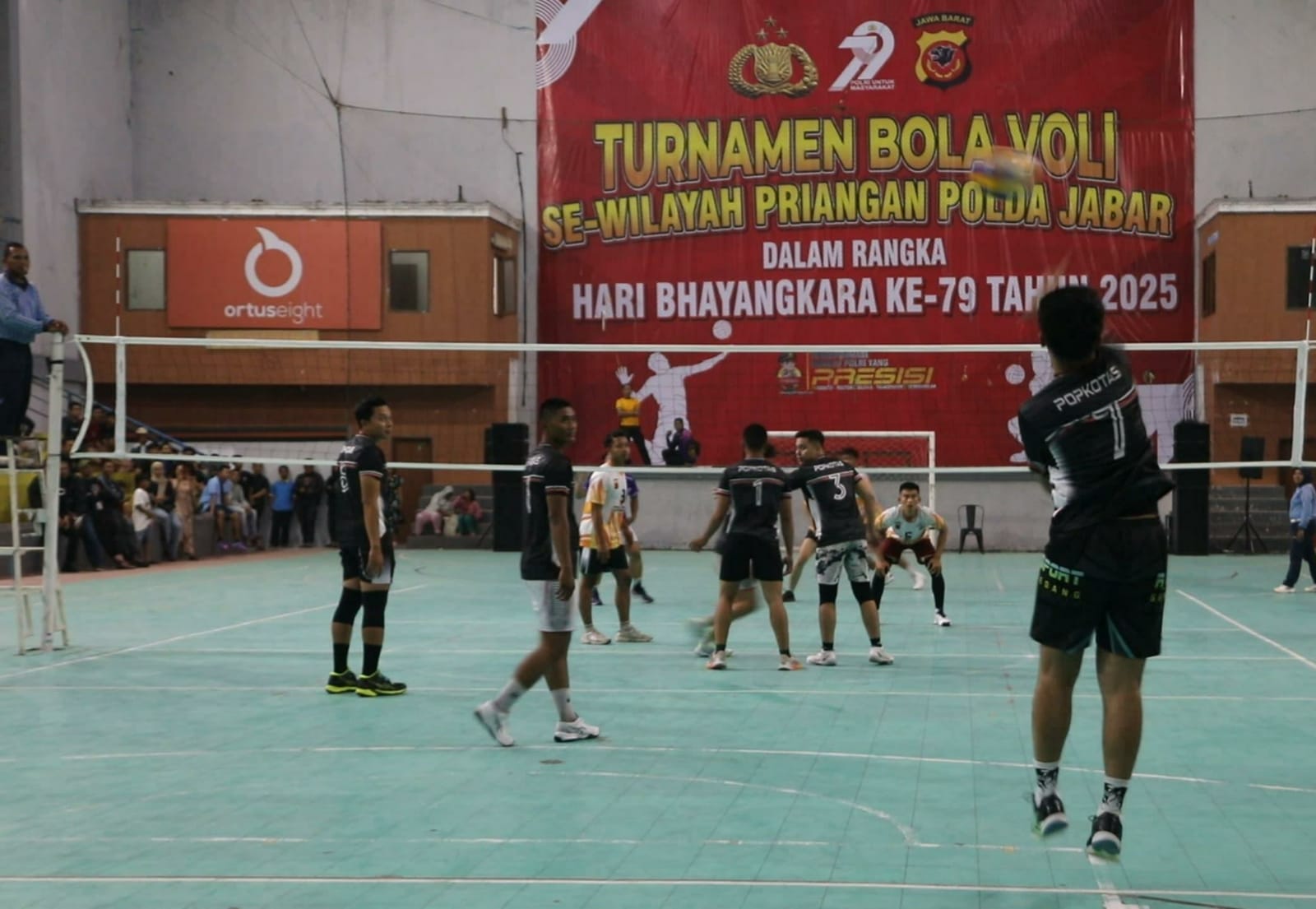 Laga final pertandingan turnamen bola voli yang mempertemukan tim Polres Tasikmalaya Kota melawan Polres Ciamis tersebut berlangsung sengit dan penuh sportivitas.