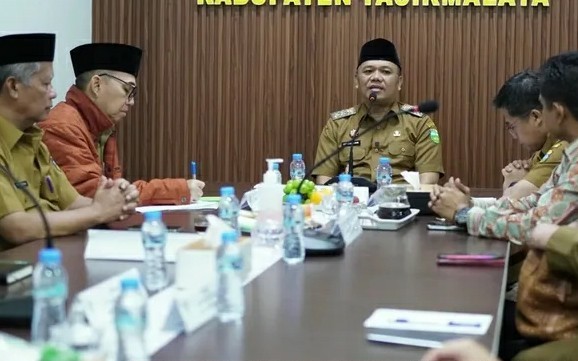 Wakil Bupati Tasikmalaya, H. Asep Sopari Al-Ayyubi berdiskusi dengan pihak Manajemen Rumah Sakit guna optimalisasi kepesertaan BPJS Kesehatan. (Dok. Dishubkominfo Kab. Tasikmalaya)