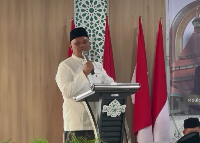 Wakil Bupati Tasikmalaya, H. Asep Sopari Al Ayubi, S.P., M.IP, menyampaikan sambutan saat menghadiri halal bihalal dan silaturahmi Pengurus Cabang Nahdlatul Ulama (PCNU) Kabupaten Tasikmalaya