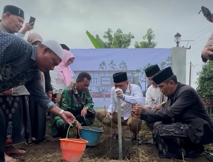 Wakil Bupati Tasikmalaya, H. Asep Sopari Al Ayubi, S.P., M.IP, (tengah) melaksanakan peletakan batu pertama pembangunan GDI Kecamatan Leuwisari
