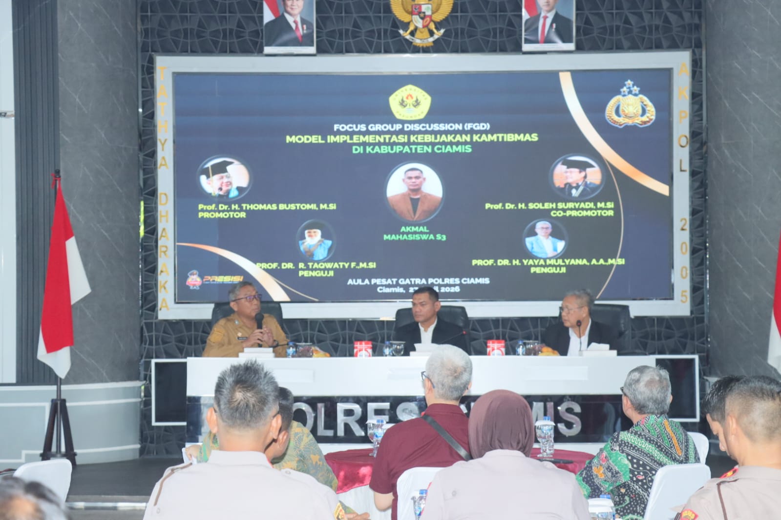 Kegiatan FGD yang mengusung tema “Model Implementasi Kebijakan Kamtibmas di Kabupaten Ciamis” tersebu digelar oleh AKBP Akmal dalam rangka Program Doktor Ilmu Sosial Universitas Pasundan Bandung tahun 2026.