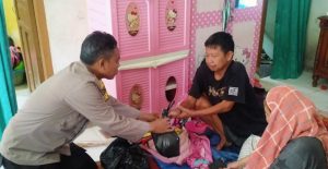 Berikan Sembako, Bhabinkamtibmas Polsek Sukaratu Sambangi Warga Ketiga Anaknya Alami Lumpuh