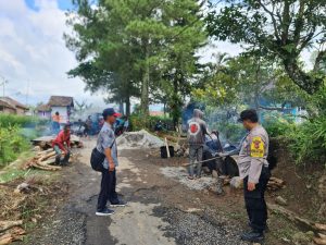 Sinergitas TNI-Polri di Desa Sukamahi Laksanakan Baksos Bagikan Sembako