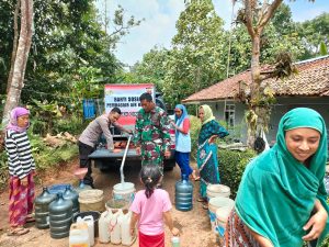 Laksanakan Baksos, Polsek Cineam Distribusi Air Bersih Kepada Warga