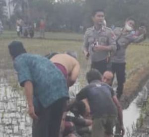 Polisi Datangi TKP Penemuan Mayat Pria Terbenam di Sawah