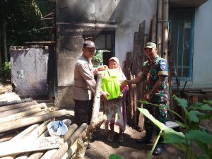 Bhabinkamtibmas dan Babinpotdirga Kelurahan Kotabaru Polsek Cibeureum Berikan Bantuan Sembako Kepada Korban Kebakaran Rumah