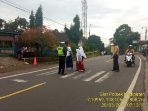 Unit Lantas dan Bhabinkamtibmas Polsek Kadipaten Laksanakan Gatur Lalin
