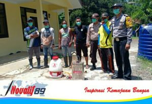 Bersatu Lawan Corona, Kepala Desa Sukanagara Terjun Langsung Lakukan Penyemprotan Disinfectant