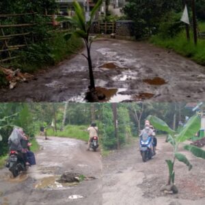 Jalan Rusak di Rajapolah Ditanami Pohon Pisang